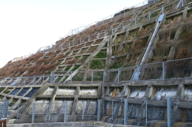 法面保護工事とは、こうして作られた斜面が崩れないように落石の予防・保護をする工事です。